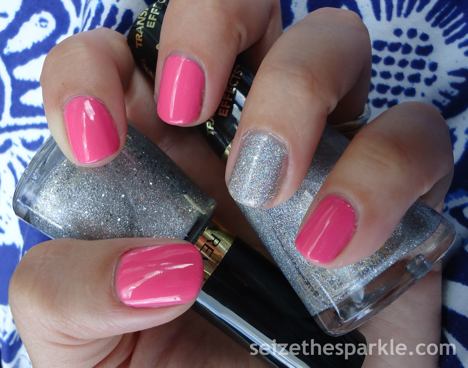 Funny story about Holographic Pearls... The other night, I was wishing that Mirrorball didn't have those slightly larger pieces of glitter in it when I thought about Holographic Pearls. Convinced that I had bought it months ago, I fruitlessly searched my stash. Nope. Have you ever done that? So, when I went to CVS the other day, I picked up a bottle along with Diamond Texture because I had a coupon for $3 off $9 worth of Revlon. Score!